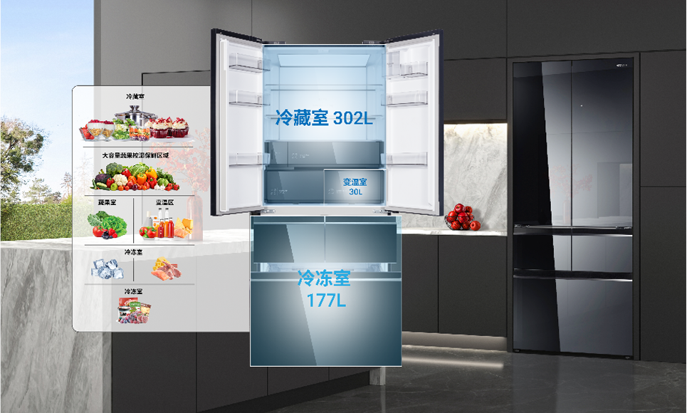 精心设计的大容量布局,每个隔层均可高效收纳各类食材。每个区域都经过优化,为您的物品提供理想的保存环境,持久保持新鲜。