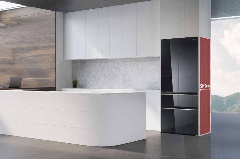 * 为保证冰箱门能够90°完全打开,建议两侧各保留不少于0.4cm的边距。若需将冰箱靠墙摆放时,请确保与墙壁空出0.4cm以上的距离,以避免因开门空间不足而影响日常使用(如无法取出食品或容器)。此外,如担心冰箱运行时的震动或湿气可能导致墙面变色,建议背面与墙壁间预留至少2cm的间隙。
