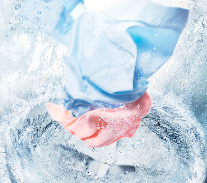 高浓缩洗涤液渗透进衣物深层,清除污垢。